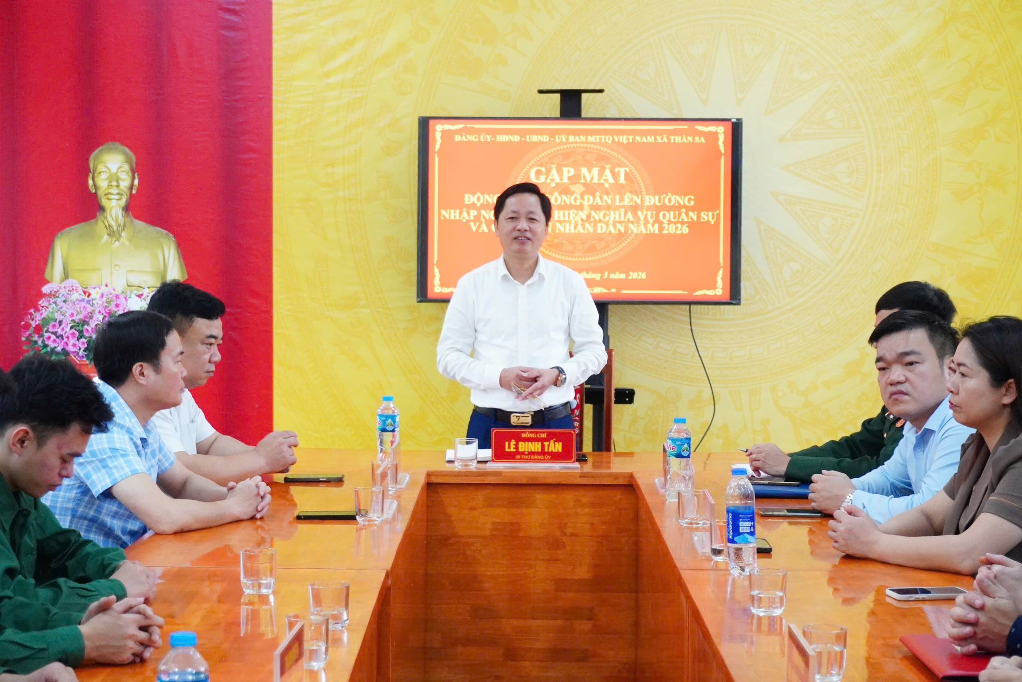 Hòa chung không khí phấn khởi của tuổi trẻ trước ngày hội tòng quân, ngày 02/3, Đảng ủy - HĐND - UBND - UBMTTQVN xã Thần Sa tổ chức Hội nghị gặp mặt, động viên công dân lên đường nhập ngũ, thực hiện nghĩa vụ Quân sự và Công an nhân dân năm 2026.